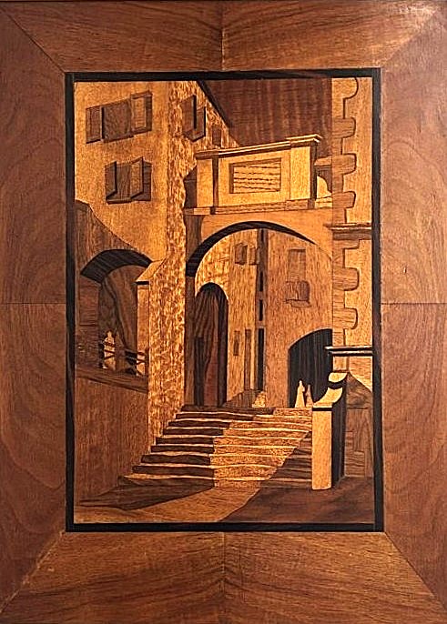 Image: Marquetry panel made by my father: N Mitchell